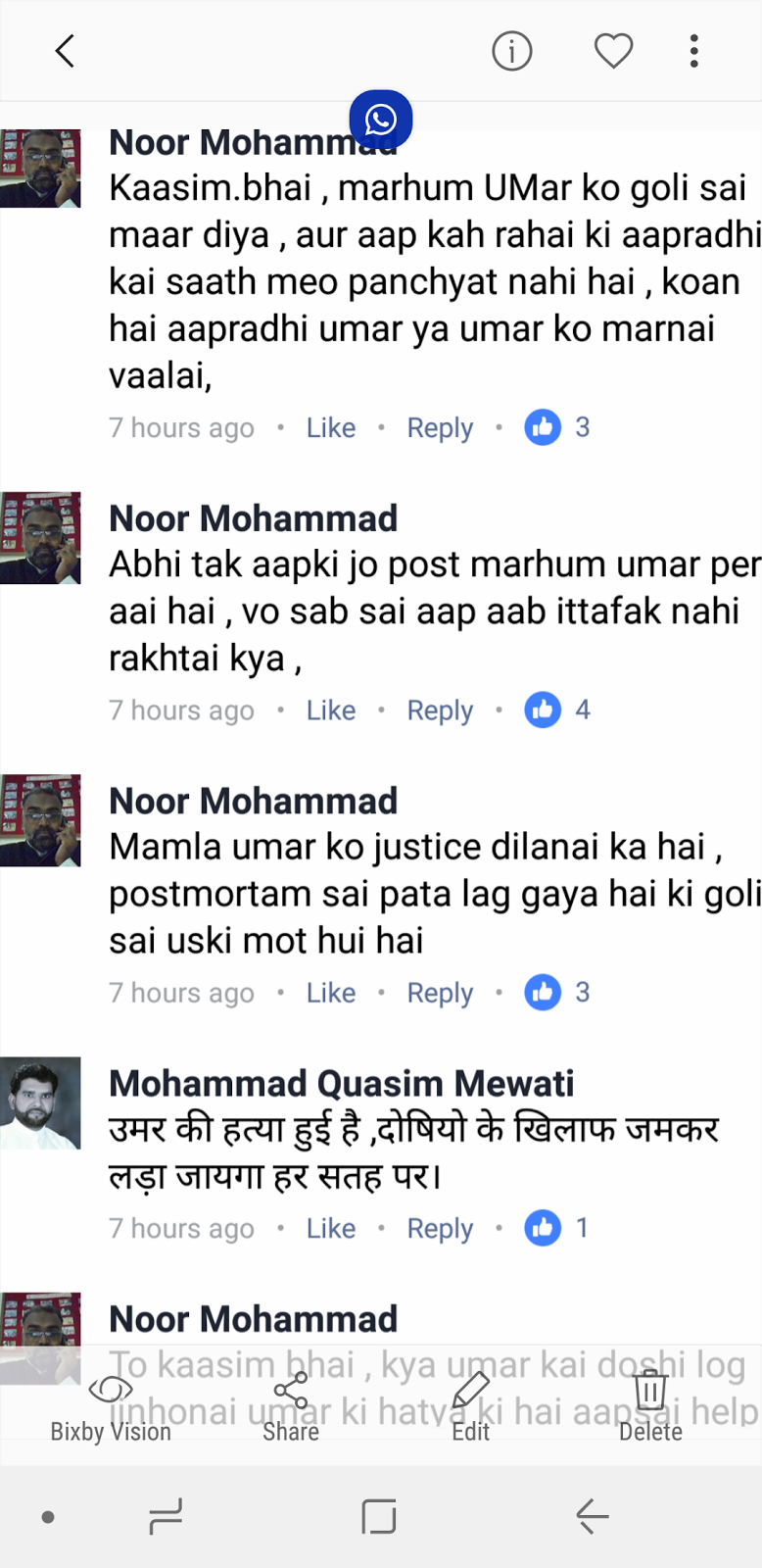 दरअसल मेव पंचायत की ओर से इस मामले में हत्यारों की गिरफ्तारी की मांग तो की गई थी लेकिन मृतक उमर मोहम्मद के परिजनों के लिए की गई नौकरी और पैसे की मांग से मेव पंचायत ने इत्तफाक नही रखा। ऊपर से मेव पंचायत के प्रवक्ता ने 11 सदस्यीय दल द्वारा मामले की जांच के बाद ही कोई कदम उठाने का बयान भी जारी कर दिया। सोशल मीडिया पर बयानबाजी शूरु हो गई और अभी जारी है।