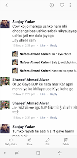 मामला राजनीतिक विरोध और समाज मे दबदबे का भी है। नौकरी और पैसे की मांग के बाद ही शव दफनाने की मांग करने वाले पक्ष से अब सवाल पूछे जा रहे हैं कि क्यों जावेद और ताहिर भी गिरफ्तार कर लिए गए हैं। हाँ एक यूजर ये भी लिखता है कि आदमी हमारा मरा ओर गिरफ्तारी भी हमारे लोगों की। दूसरी और गाय को मारने का ववरोध भी साफ तौर पर लिखा जा रहा है।