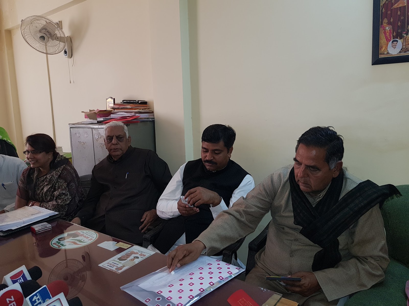 कांग्रेस की पत्रकार वार्ता में अलवर जिलाध्यक्ष टीकाराम जूली, पूर्व मंत्री बृजकिशोर सैनी, पूर्व विधायक कृष्णमुरारी गंगावत और कांग्रेस नेता बस्तीराम यादव समेत कई लोग मौजूद रहे। उन्होंने कहा कि भाजपा के लोग एसी वारदात कर सकते हैं ताकि हिन्दू वोट उनके पक्ष में चला जाये। इसलिए वो पूरे मामले की गम्भीरता से जांच की मांग करते हैं। हालांकि इससे पहले ही पुलिस जांच का आश्वासन कांग्रेस के नेताओं और ग्रामीणों को दे चुकी थी। पूरे मामले में कांग्रेस भाजपा कुछ आरोप लगाये उससे पहले ही आपने आप को सुरक्षित कर लेना चाहती थी।