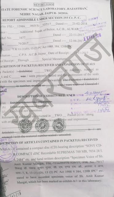 अलवर के चर्चित सीएमएचओ रिश्वत प्रकरण में वॉयस सैम्पल की रिपोर्ट आई है जिसमें कुछ नहीं है